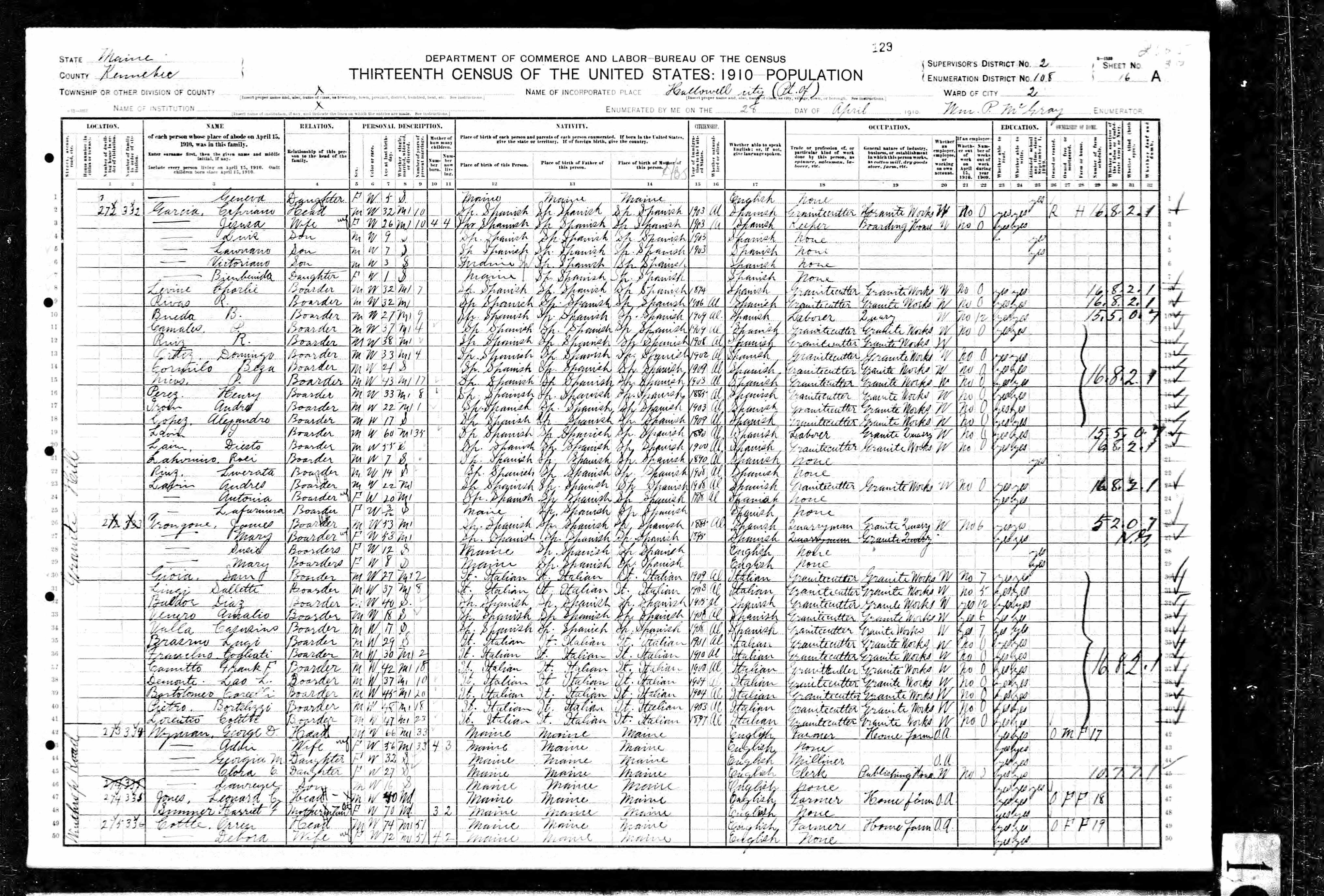 Gracias a las investigaciones realizadas por Koldo San Sebastián, que ha trabajado con las listas de pasajeros de Liverpool, hemos podido averiguar que en las primeras décadas del siglo XX hubo un flujo considerable de españoles –cántabros, principalmente– a Hallowell, estado de Maine. Igual que los españoles que emigraron en la misma época a Barre y Montpelier, Vermont (cántabros también, en su mayoría) éstos sin duda venían a trabajar en las canteras de granito.